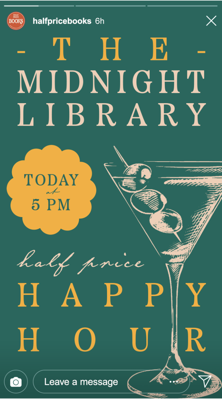 We want to make Half Price Books an inviting destination for people to visit and build connections based on their love of books and, in turn, provide a solution to the rise of online book shopping. Now more than ever, people are searching for a place to find community. Everyone wants to belong somewhere, so why not make Half Price Books that place?
